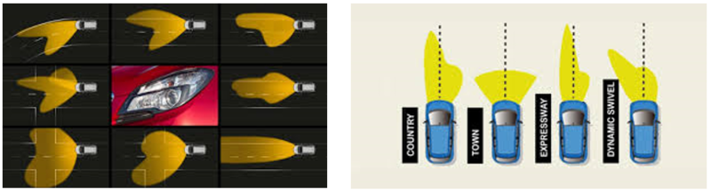 Hình 2: Đèn pha thích ứng khi vào cua Hình 3: Đèn pha thích ứng đa điểm