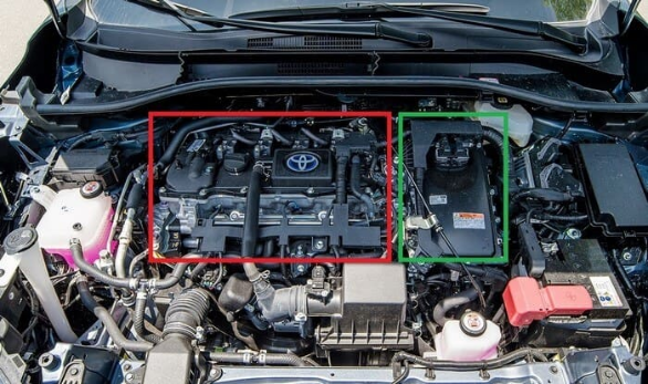 Trong khi đó, xe Hybrid sẽ tận dụng năng lượng được truyền đến bánh xe bởi 3 nguồn khác nhau. Năng lượng của động cơ đốt trong, năng lượng bổ sung từ pin hybrid và năng lượng từ máy phát điện xoay chiều. Điều này giúp động cơ đốt trong được giảm tải bớt đi. Nó giúp xe tiết kiệm được nhiên liệu.