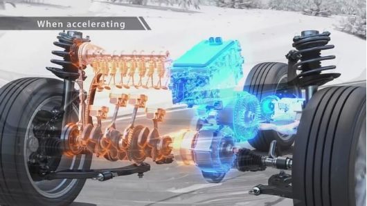 Bất cứ khi nào người lái đạp thốc ga, dù tại vị trí đứng yên hay đang tốc độ di chuyển ổn định, xe sẽ lấy thêm điện từ pin hybrid để bổ sung cho động cơ điện, đồng thời động cơ xăng hoạt động bổ sung.