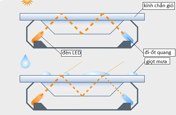 - Một chùm tia hồng ngoại được chiếu từ cảm biến tới mặt kính chắn gió.