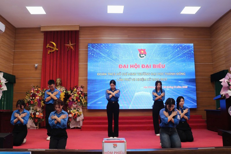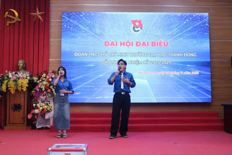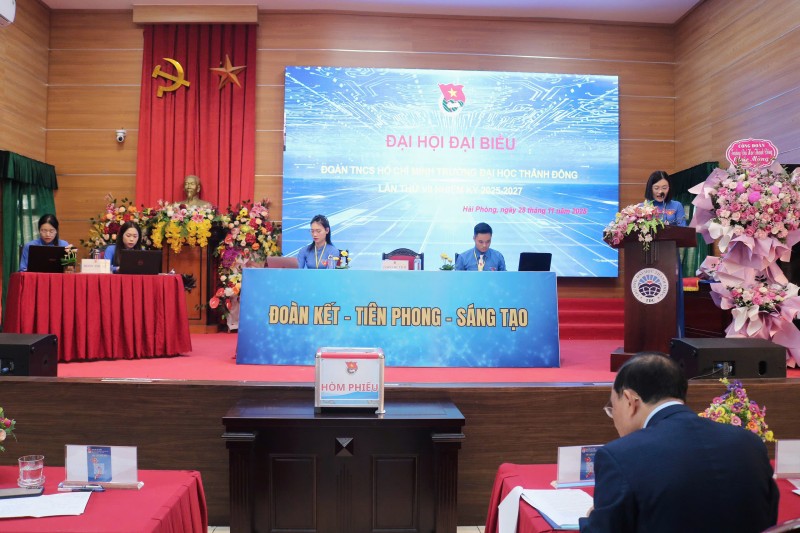 hiều ngày 28/11/2025, Ban Chấp hành lâm thời Đoàn TNCS Hồ Chí Minh Trường Đại học Thành Đông long trọng tổ chức Đại hội đại biểu Đoàn TNCS Hồ Chí Minh lần thứ VII, nhiệm kỳ 2025-2027. Với 100/100 đại biểu được triệu tập có mặt, Đại hội đủ điều kiện tiến hành theo Điều lệ Đoàn và các hướng dẫn của Thành đoàn Hải Phòng. Sự kiện được tổ chức căn cứ Kế hoạch và Hướng dẫn số của Ban Thường vụ Thành đoàn về Đại hội Đoàn các cấp, tiến tới Đại hội đại biểu Đoàn TNCS Hồ Chí Minh thành phố Hải Phòng lần thứ I.