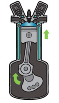 3.2. Kỳ nén: Piston sẽ di chuyển từ điểm chết dưới (ĐCD) đến điểm chết trên (ĐCT). Lúc này toàn bộ van nạp và van xả đều đóng chặt, hỗn hòa khí bị nén lại.
