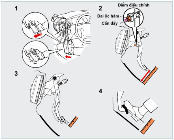 Các mục kiểm tra, điều chỉnh bàn đạp phanh