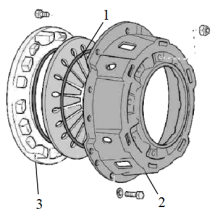 1. Lò xo; 2. Vỏ ly hợp; 3. Đĩa ép.
