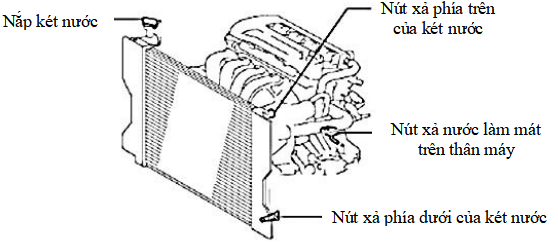 - Không được nới lỏng nút xả phía dưới của két nước khi động cơ và két nước vẫn đang nóng. Nước làm mát nóng và hơi nước áp suất cao có thể sẽ thoát ra và gây bỏng nghiêm trọng.