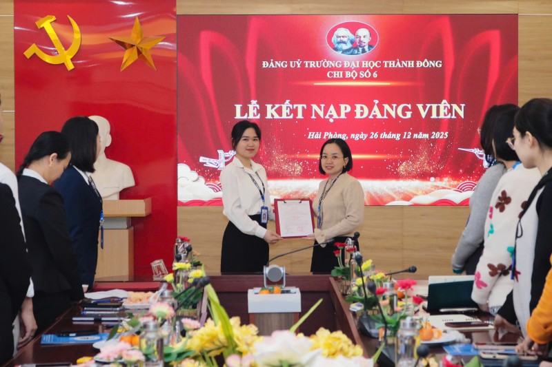 Ngày 26/12/2025, các Chi bộ số 1, 2, 3, 4, 5, 6 trực thuộc Đảng ủy Trường Đại học Thành Đông đã long trọng tổ chức Lễ kết nạp Đảng viên mới cho 20 quần chúng ưu tú. Buổi lễ là dấu mốc có ý nghĩa quan trọng, ghi nhận quá trình rèn luyện, phấn đấu bền bỉ của các cá nhân được vinh dự đứng vào hàng ngũ của Đảng Cộng sản Việt Nam.