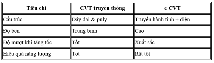 3.3. So sánh e-CVT và CVT truyền thống