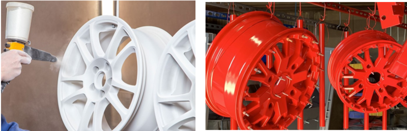 - Sơn bánh xe và phụ kiện: Sơn tĩnh điện giúp bánh xe và phụ kiện có màu sắc bền đẹp, không bị phai theo thời gian và chịu được tác động của thời tiết.
