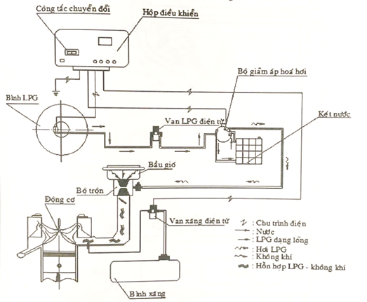 Hệ thống nhiên liệu dùng LPG bao gồm các bộ phận chính: