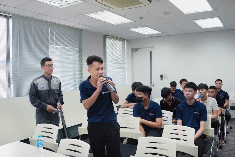 Tại mỗi điểm đến, sinh viên được tham quan xưởng sản xuất, khu bảo dưỡng, dây chuyền lắp ráp và trung tâm dịch vụ khách hàng, đồng thời trao đổi trực tiếp với các kỹ sư, chuyên gia kỹ thuật và quản lý doanh nghiệp.