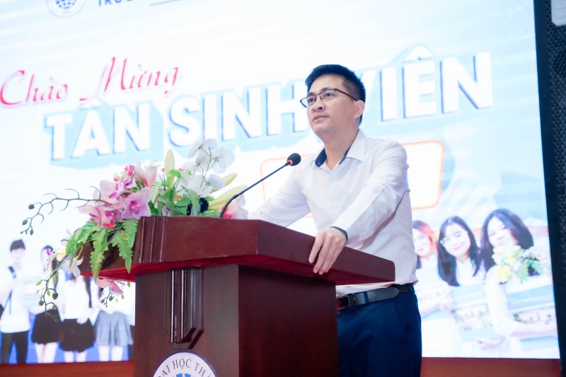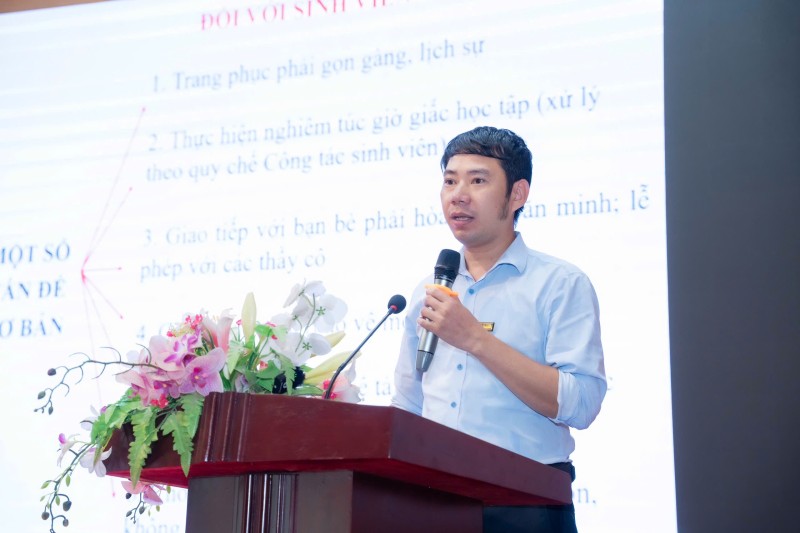 ThS. Nguyễn Văn Nam – Phó Hiệu trưởng nhà trường phát biểu, nhấn mạnh ý nghĩa của buổi hướng dẫn nhập học.