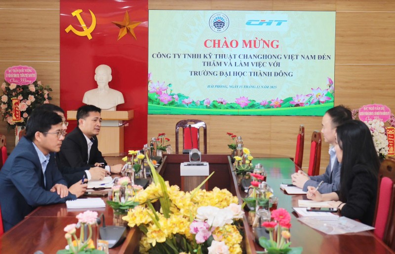 Buổi làm việc giữa Trường Đại học Thành Đông và Công ty TNHH Kỹ thuật Changhong (Việt Nam) diễn ra chiều 15/12/2025, nhằm trao đổi các định hướng hợp tác chiến lược trong đào tạo, cung ứng nguồn nhân lực, nghiên cứu khoa học và hỗ trợ sinh viên, góp phần gắn kết đào tạo với nhu cầu thực tiễn của doanh nghiệp.